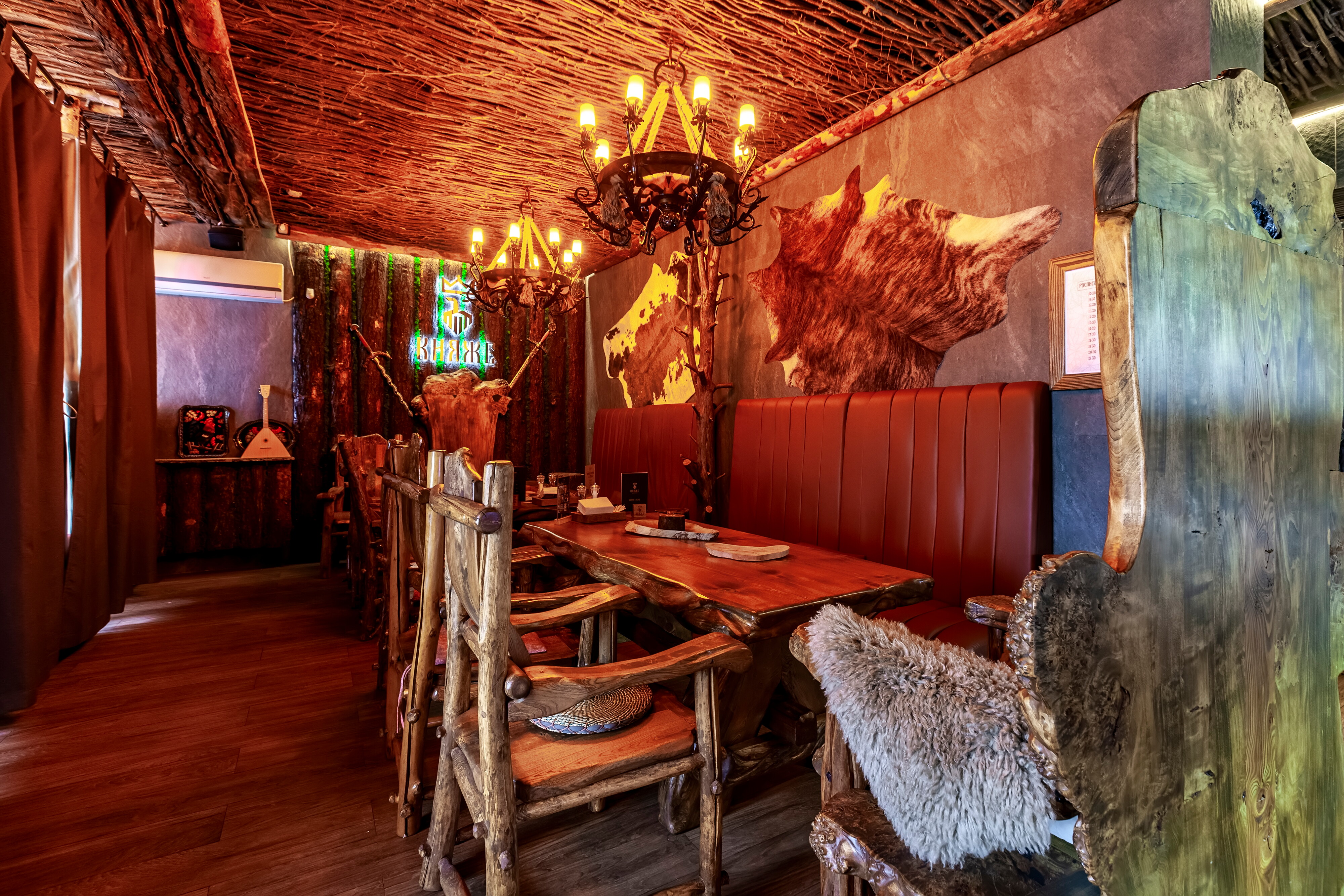 Не хочется в бассейн? Не беда! Вместо этого можно провести время в нашей комнате отдыха. Мы постарались создать здесь комфортный, стильный интерьер из максимально натуральных, безопасных материалов, подобрать мебель, которая будет одновременно удобной и приятной глазу. Надеемся, что он придется вам по душе! Также у нас работает бар, где вы можете приобрести блюда русской кухни. Главное помните, что плотная трапеза незадолго перед посещением парной - это не самая хорошая идея, согласно мнению врачей. А вот после парной можно трапезничать смело!